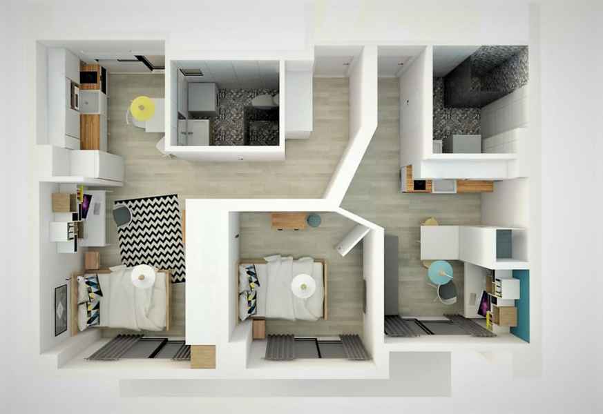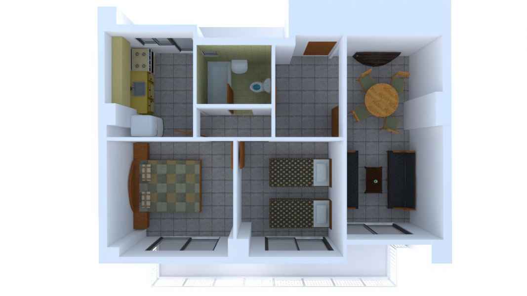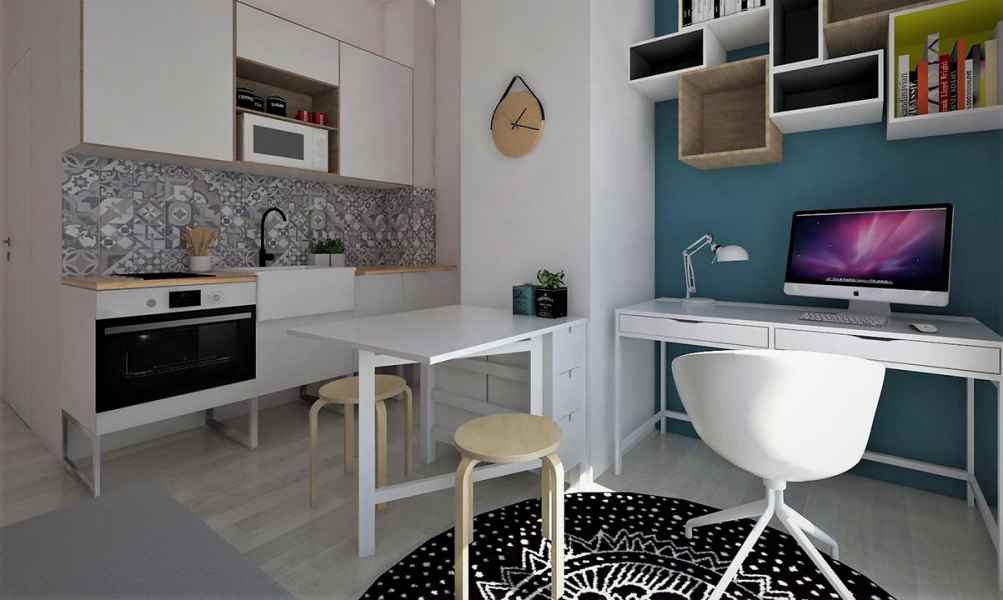 Our technical Office designed two independent studios, creating a space that evokes the design integrity of expensive rooms of a hotel with indoor specific construction, so that the room is divided into areas for virtual sleeping, eating and fun, diakrinomeno from two to three corners. In a small lounge (sofa and coffee table), in another corner of sleep (one bed) and third dining corner (a small kitchen cabinet and a table which, however, can be turned into Office). The materials used for the floors and two studios in single hosting space in living room, dining room and kitchen which were invested with Moroccan line is industrial screed, in colors of gray and white, open for to give all the required brightness at home but also to give a sense of a larger space. Pleasant surprises farm decorative wall, that is veneered with brick, giving one character "rustic" in space, while providing thermal insulation but also sound insulation properties. For the color of the walls chosen shades of beige and white giving an "opening" in space, with primary care to cover internal with total eco-primer coating.