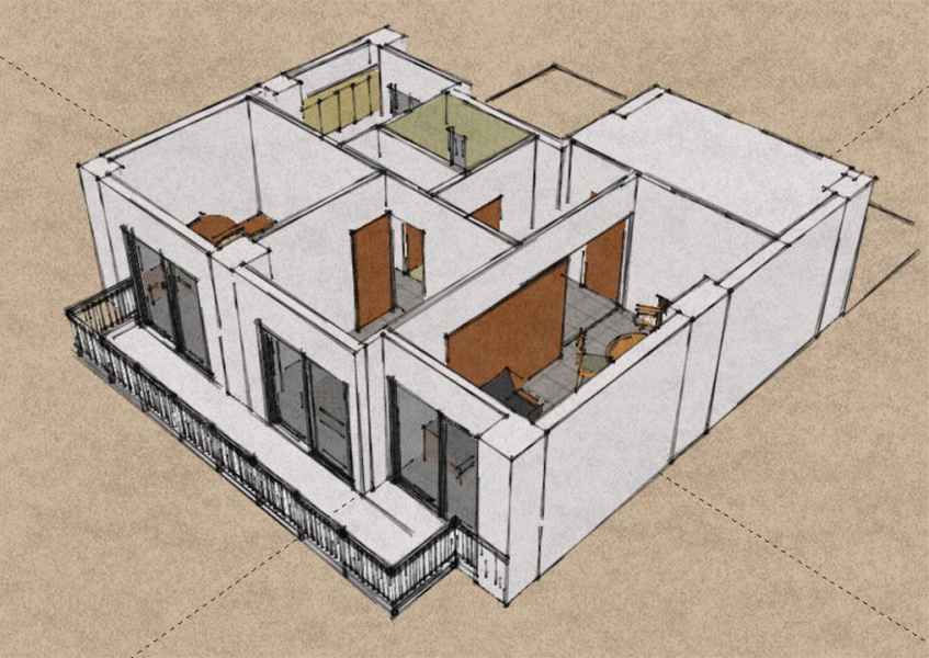 It was a difficult undertaking for our technical Offices such remodeling space, but the systematic study, our know-how and our experience was mainly the kinitirios power of winning a bet with the resistances between the building and the creator. The two lodges designed with the premise to "armed" with the bare essentials to live, based on the desire of their owners, and we did it in 26 sqm. and via scattered light from the large Windows and doors "opened", using natural materials, uniform daring surfaces, earthy options and simplicity of design, to create the owners a choice of simplicity and distinguishable life dynamic that exudes austerity our whole philosophy. The best way to prove that proper exploitation of available square, can with proportional and design, to maximize functionality and spaciousness, always without discounts in comfort and without aesthetic compromises.